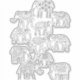 Dessins de trait mignons et complexes d'éléphants décorés.