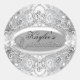 Sticker Quinceanera Argent. Elégant design damassé perle & arcs en diamant. Remarque : Toutes les images plates !