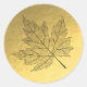 Sticker rond classique simple et élégant avec Arrière - plan à huile d'or et image feuille d'érable noire.