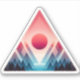 Un Sticker en forme de Triangle avec une scène de montagne, design d'autocollant symétrique, design surréaliste plat, Design créé en haute résolution.