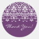 Notre damas blanc élégant sur un arrière - plan mauve, autocollants de remerciement sont le toucher parfait pour vous remercier notes de remerciement ou les faveurs de douche nuptiale. Objets correspondants disponibles dans notre boutique @ www.celebrateitinvites.com. Cet article est disponible dans une variété de combinaisons de couleurs!