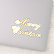 Autocollant vinyle taillé sur mesure avec une image du sentiment "Joyeux Noël" en écriture dorée. Voir l'ensemble de la collection Holiday Sticker dans les INVITATIONS | Section Stickers & Étiquettes.