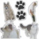 Chats et Chiens avec empreintes de pattes. Deux chats différents, deux chiens différents et deux silhouettes empreintes de pattes.