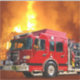 Moteur d'incendie d'urgence sur les lieux de l'incendie de la maison