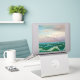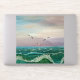 Un tableau serein de la mer saisit le mouvement rythmique des vagues, roulant doucement mais puissamment sous un vaste ciel. Des vagues à pointes blanches s'égrènent le long de l'eau bleue profonde, chacune reflétant une touche de lumière du soleil. Au premier plan, les mouettes glissent gracieusement au-dessus de l'eau, leurs ailes s'étalent large, jetant de délicates ombres sur les vagues en dessous. L'horizon s'étire sans fin, mêlant des teintes douces du ciel et de la mer, créant un sentiment d'ouverture et de liberté. La scène est paisible mais vivante avec le bruit des vagues et les appels lointains des oiseaux de mer.