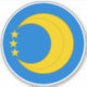 "Azur, en annulo un croissant et entre ses cornes trois rougets ou."