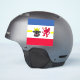 Sticker en vinyle avec drapeau de variante de Mecklembourg-Poméranie occidentale; design avec cinq bandes horizontales de rouge, blanc, bleu et jaune, et avec des illustrations de la tête de taureau et de l’aigle rouge