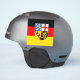 Sticker en vinyle avec drapeau de Sarre; design avec tricolore horizontal de noir, rouge et jaune (or), avec armoiries de l’état au centre