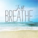 Belle plage de sable, vagues bleues et ciel vaporeux avec les mots "respirez tout simplement". Paradis !