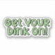 Un design de typographie amusant avec les mots "Get Your Dink On!" dans une police verte rétro. Ce design est une excellente idée cadeau pour les joueurs de pickleball !