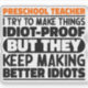 Drôle Enseignant Préscolaire Dit "Enseignant Préscolaire J'Essaie De Faire Des Choses Idiot Preuve Mais Ils Continuent À Faire De Meilleurs Idiots". Attrapez ce dessin amusant d'enseignant préscolaire comme un cadeau amusant pour une maman, un père ou un ami génial.