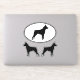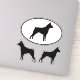 Ovale et ensemble découpé avec des matrices d'autocollant. Ces décalques durables de silhouette de chien sont imperméables et éraflure résistants. Collez ces autocollants de vinyle de Pinscher miniature à votre ordinateur portable, à téléphone, à carnet, à bouteille d'eau, à casque, à planche à roulettes, ou même à votre voiture. Visitez le monde du griffonnage de Jenn pour bien plus de cadeaux de décalques de vinyle de race de chien et d'amant de MinPin.