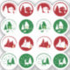 Sticker Ensemble de 16 scènes hivernales de Noël vert-roug