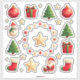 Collection d'autocollants de Noël comprenant le Père Noël, des ornements, des boîtes de cadeaux, des arbres et des icônes festives. Parfait pour la décoration des fêtes, les bricolages et les cartes, transmettant la joie, la famille et la gaieté saisonnière.