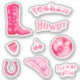 Ensemble d'autocollants dans des tons roses, faux strass : botte de cowboy, boule à facettes, fer à cheval, chapeau de cowgirl, typographie groovy "howdy", "yeehaw", "allez les filles" avec cerise de boule à facettes, fraise scintillante, esthétique western country / disco / coquette, fera un cadeau parfait pour adolescente, meilleure amie, remise de diplôme, anniversaire, enterrement de vie de jeune fille dernière fête de rodéo comme décoration de fête, papeterie, autocollants pour sacs ou enveloppes ou sceau, ou pour décoration de journal, scrapbooking et autres travaux manuels.