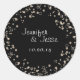 Sticker Enveloppe Bubbles de Champagne Sceau en noir, rose, or et blanc. Personnalisez les noms et la date.