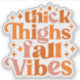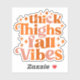 Ce design d'automne dynamique et ludique comprend l'expression amusante et confiante "Thick Thighs Fall Vibes" dans une police audacieuse d'inspiration rétro. Le texte est agencé dans une mise en page dynamique et empilée, avec chaque mot rempli de teintes chaudes d'automne, y compris les tons orange, pêche et rose doux. Les étincelles qui entourent l'hôtel apportent une touche de fantaisie et de brillance, ce qui renforce l'atmosphère festive et cosy du design. La typographie est à la fois audacieuse et courbée, lui donnant un attrait vif et vintage qui saisit parfaitement l'essence de l'automne.