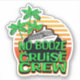 Autocollant Équipage de croisière sans alcool Vacances amusantes, spécialement conçu pour les groupes de voyage chrétiens ou les alcooliques en rétablissement qui célèbrent une croisière. Le design montre un bateau de croisière avec une typographie en gras, des palmiers et un coucher de soleil vintage. Superbe autocollant de croisière pour égayer vos affaires.