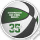 Cet autocollant personnalisé de basket-ball présente l'image réaliste d'un basketball qui a alternativement des panneaux recolorés vert, blanc et noir, sur lesquels vous pouvez personnaliser le nom de l'athlète et le numéro de maillot plus le nom de l'équipe - par katz_d_zynes