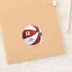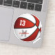 Cet autocollant de basket pour les garçons (ou les filles) présente l'image d'un ballon stylisé avec des panneaux recolorés rouge et blanc et facilement personnalisable nom du joueur, numéro de maillot & monogramme ou lettre de varsity - par katz_d_zynes