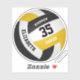 Ce sticker vinyle sur le thème du volley-ball pour les filles ou les garçons dispose d'un simple volley-ball avec panneaux noirs, or et blancs sur lequel vous pouvez customiser le nom du joueur et le numéro de maillot dans une police de style lettre variée - par katz_d_zynes