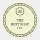 L'autocollant présente un design moderne et propre avec des polices sophistiquées et des illustrations subtiles qui complètent l'esthétique de votre emballage de savon.