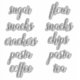 Étiquettes de l'organisation de la cuisine en écriture noire ! Redimensionnez le texte pour l'adapter aux conteneurs de stockage auxquels vous prévoyez d'appliquer des autocollants. Utilisez les options de personnaliser pour changer les étiquettes à ce dont vous avez besoin!