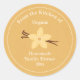 Un bâton Étiquette rustique à base de kraft jaune et l'illustration d'une fleur de vanille et de ses bâtonnets séchés pour vos produits ou recettes maison à base de vanille (extrait, bâtonnets séchés, gâteau, crème glacée, bougie, savon). Parfait pour étiqueter et partager vos produits artisanaux avec vos amis et votre famille, ou pour vendre vos produits sur un marché !