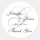 Gris, noir et blanc Elégant mariage Monogramme Merci Étiquettes. Ces autocollants de remerciement mariages sont la façon parfaite de personnaliser vos faveurs de mariage. Modèle personnalisé pour "G" initial. Ajoutez vos noms de mariée et de mariée et votre date de mariage. Superbe police de caractères script superlay design sur un arrière - plan blanc. Elke Clarke©