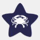 Forme de crabe blanc contre un bleu marine foncé. L'espèce est un crabe bleu.