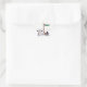 Le bonhomme de neige est habillé de gants et de boutons bleus. Le bonhomme de neige est debout à côté d'un poteau blanc et rouge avec un signe vert qui dit "pôle Nord". Les cadeaux sont à côté du pôle. De la neige blanche est posée sur le sol. Les autocollants sont disponibles avec un dossier blanc ou noir.