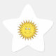 Sticker Étoile Soleil d'été jaune avec un visage heureux.