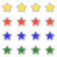 Feuille de 16 étoiles (4 jaune, 4 rouge, 4 bleu, 4 vert). Idéal pour une utilisation dans la salle de classe, le scrapbooking ou la décoration.