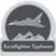 Dessin vectoriel avec un légendaire chasseur européen, l'Eurofighter Typhoon, l'un des avions les plus connus, survolant les montagnes pour les passionnés de l'armée et de l'aviation.