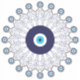 Autocollant à motifs d'un mandala circulaire en bleu marine, bleu turquoise et blanc, symbole oculaire protecteur