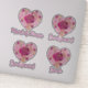 The design features custom cutting that follows the contour of the entire design, including the heart, text, and other elements, available in different sizes and finishes, ensuring each sticker maintains its shape and beauty on any surface.