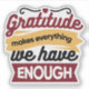 Celebrate the power of gratitude with this inspirational Christian quote: 'Gratitude makes everything we have enough.' A beautiful faith-based design for decor, apparel, and gifts. #Thankfulness #Grateful