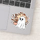 Autocollant de fantôme et de café. Décor esthétique de la saison d'automne pour les baristas et les amateurs de café. Illustration beige, marron et rose avec un fantôme mignon tenant une tasse de café. Autocollants esthétiques d'automne douillets.