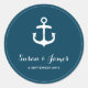 Un autocollant à thème nautique moderne qui présente une illustration d'ancrage sur un arrière - plan de la Marine. Parfait pour les Noces Nautiques.