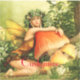 Fée blonde aux yeux bleus embrassant un grand champignon amanita pour customiser avec votre propre salutation, nom, message, etc