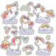 Feuillet autocollant de couleur avec des licornes pastel joliment potelées avec étoiles, lune, coeurs, rubans, bonbons et arcs-en-ciel. Modèle de nom personnalisable de sorte que même votre enfant avec un nom inhabituel puisse mettre son nom sur des livres ou des objets.
