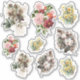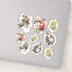 Une feuille d'autocollants contient 9 autocollants de 3 types de fleurs différents. Ils peuvent être utilisés comme sceaux d'enveloppe ou décoration sur d'autres objets.