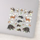Les animaux de la forêt de pins conifères, accentués de branches de evergean, remplissent cette feuille d'autocollant rustique. Ours, cerf de cerf, raton laveur, faucon, écureuil et tambour. Cette feuille autocollante s'adapte bien aux formats moyens, grands et très grands.