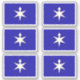 A set of 6 vinyl stickers with a design with the flag of Chiba Prefecture in Japan (千葉県, Chiba-ken), a blue flag with a white and yellow symbol