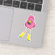Sticker Flamant rose à la pluie avec bottes en caoutchouc