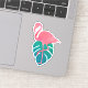 Un autocollant flamand rose avec une aquarelle feuille de monstère tropicale.