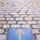 Flèche jaune marquant le Chemin de Saint Jacques (Camino de Santiago), Logroño, La Rioja, Espagne