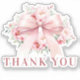 Un ruban rose sur des fleurs roses, des roses. Texte : Merci