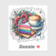 Sticker Fleurs, café et gâteau arc-en-ciel