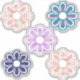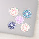 Cinq fleurs colorées sur des stickers vinyle découpés au laser